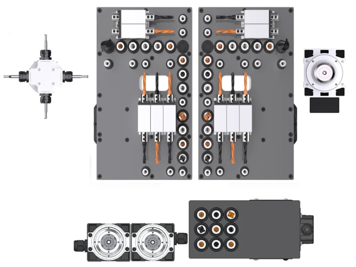 Lower part: double spindle 3.5 kW × 2, which can be equipped with tapping and straight tools to achieve greater precision during tapping.