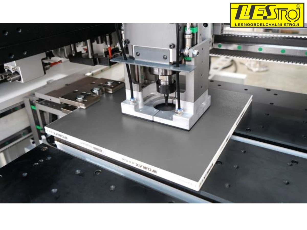 It is equipped with three independent drilling heads featuring a total of 51 drills, four milling units with automatic tool change, and a grooving saw – providing top flexibility and efficiency for both batch and custom production.