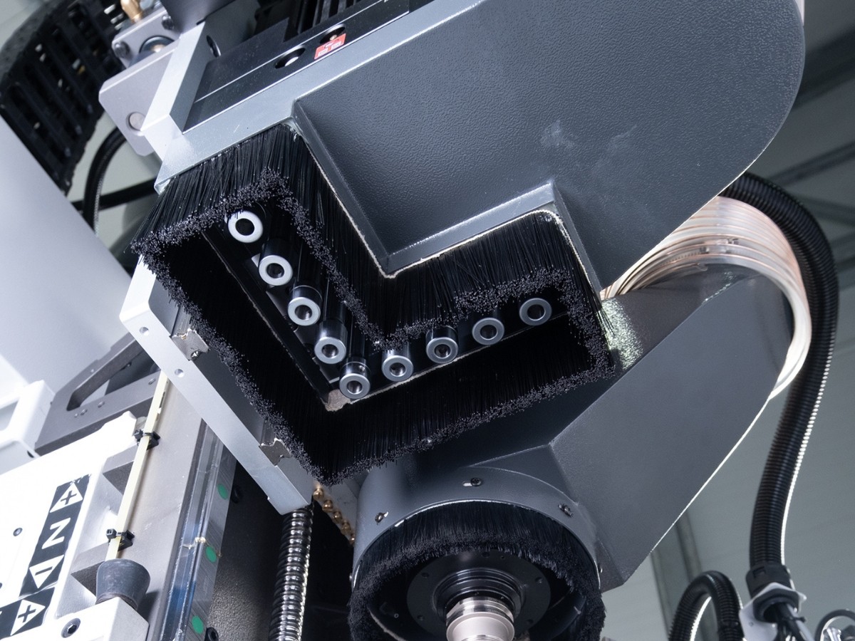 Programming and control are handled via the LNC CNC control system, while the vacuum system with a dual vacuum pump setup ensures reliable fixation of workpieces, even small ones.