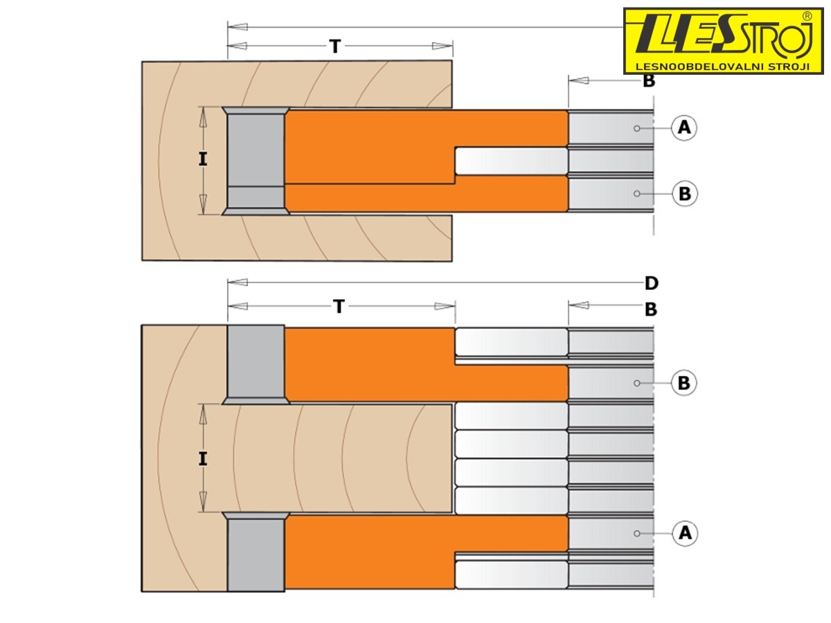 The 2-piece adjustable grooving cutter head is made of lightweight aluminium alloy with interchangeable HW blades that rotate and do not need to be sharpened. It is intended for making precise rabbets and grooves in hard and soft solid wood and wood composites with thickness ranging from 14 to 27 mm and depth of 44 mm.