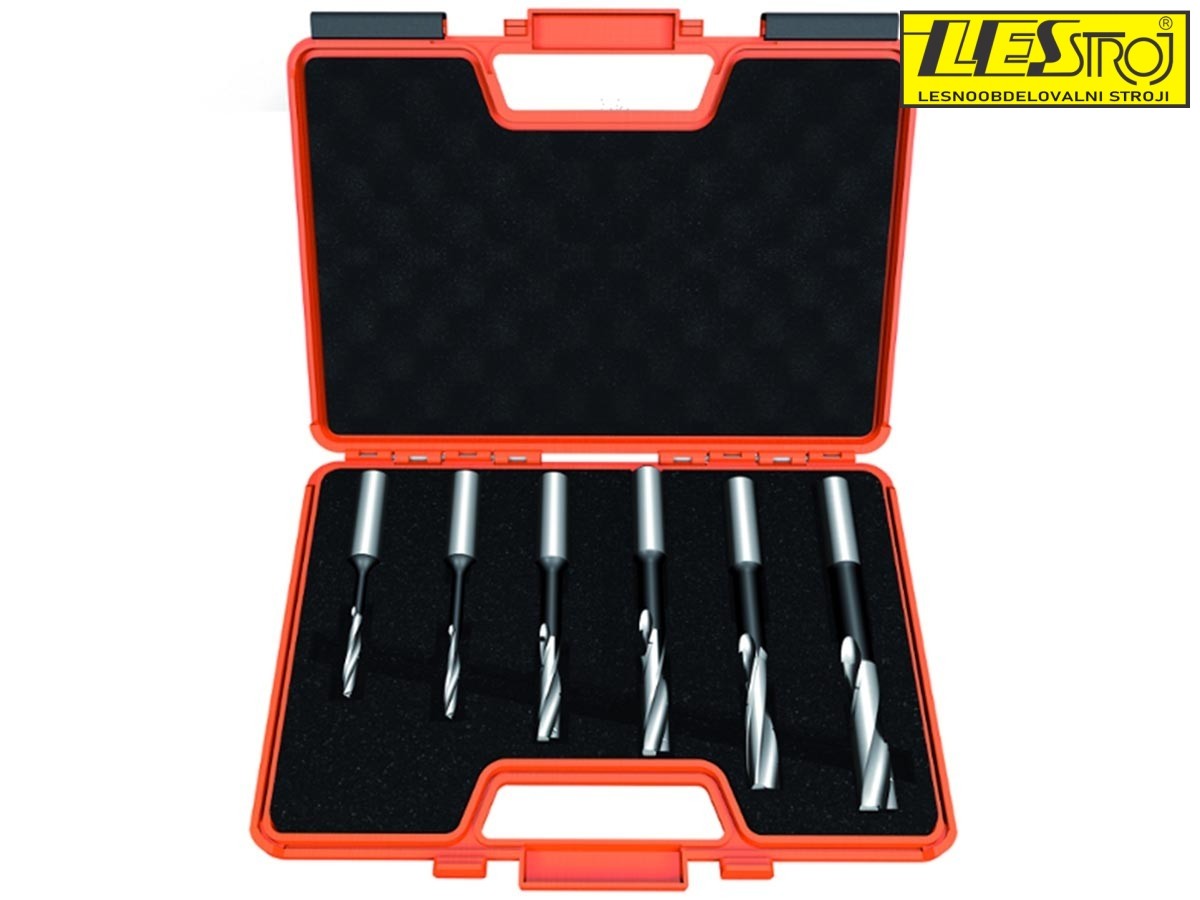 The set includes six slot mortising bits with a diameter ranging from 6 to 16 mm with a shank diameter of 16 mm.