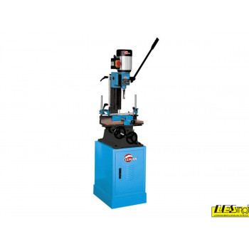 The square chisel mortiser is intended for the easy production of 4-cornered (square) holes with the help of special drills. The machine is made entirely of metal and stands on a base that serves as a storage cabinet. The drill has a 750 W single-phase motor and the ability to make holes with a diameter of 6 to 19 mm.