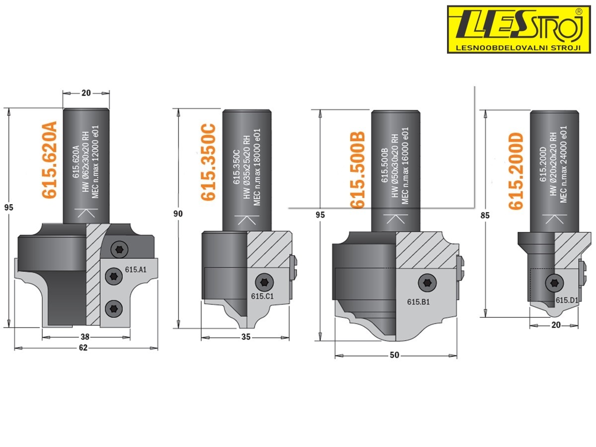 The cutting set for CNC is intended for making furniture doors (for example, for kitchens, bathrooms) out of MDF boards. The body is made of steel, while the blade is out of HW.