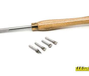 Professional wood-turning chisel with four carbide-tipped blades that can be easily replaced at the end of the mount. The main advantage of carbide-tipped blades is greater hardness.