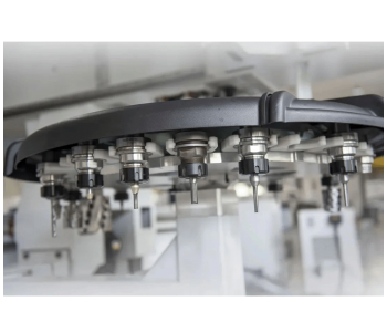 Zmogljiva Protean vrtalna enota omogoča namestitev do 20 svedrov in eno integrirano žago. Transportni trak za odpadke, ki skrbi za čisto delovno okolje, je vštet v standardno opremo stroja KN-5510.