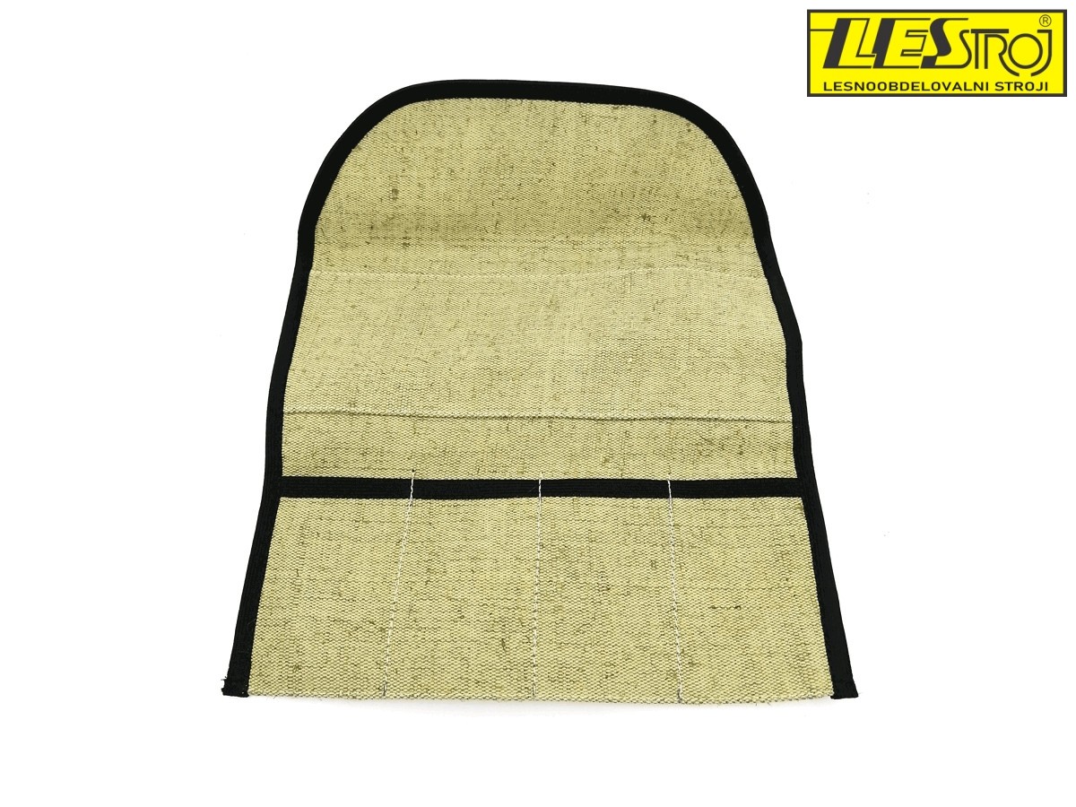 Enostavna torba za shranjevanje rezbarskih nožev. Torba ima 4 predale, širina predala 60 mm, globina pa 90 mm. Celotna torba je dimenzij 340 x 260 mm.