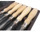 NAREX Richter - 5 delni set ravnih dlet v kovčkuje popolna izbira za profesionalno delo z lesom. Izdelana so iz visokokakovostnega krom-vanadijevega jekla in podvržena kriosferični obdelavi, kar zagotavlja izjemno trdnost in vzdržljivost. Set vključuje pet različnih velikosti (6 mm, 10 mm, 13 mm, 19 mm, 25 mm), ki so natančno brušene in polirane. Ergonomski ročaji iz jesenovega lesa omogočajo optimalno udobje in nadzor. Robustna ferrula iz nerjavečega jekla in usnjen disk zagotavljata dodatno stabilnost. Ta set izpolnjuje najvišje standarde kakovosti in je idealen za zahtevne obrtnike.