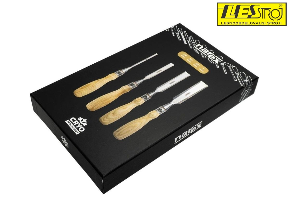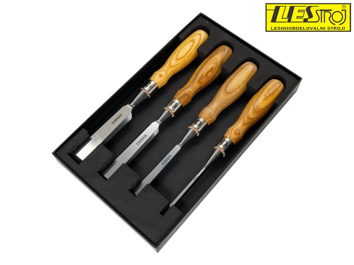 V setu so dleta širine 6, 13, 19 mm in 25mm. S tem naborom boste dobro opremljeni za večino običajnih mizarskih opravil.