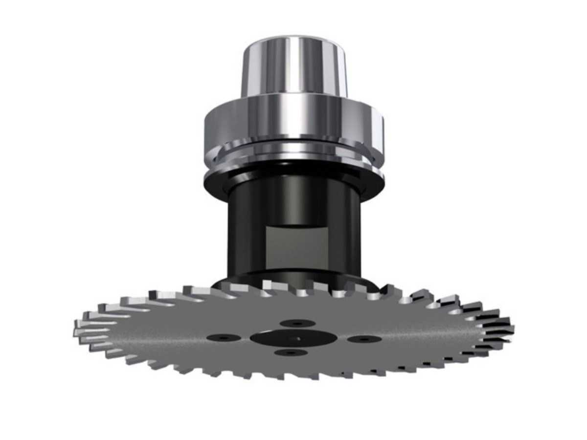 Držalo utornega žaginega lista z vpetjem HSK-F63, namenjen za natančno in stabilno vpenjanje krožnih rezalnih listov na CNC obdelovalnih strojih za obdelavo lesa. Največji premer žage, ki se lahko vpne je 250 mm.