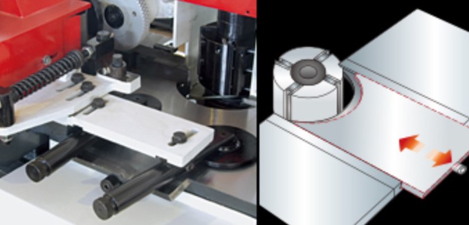 Stroj za rezkanje, opremljen z vodilno utorno mizo zato lahko obdeluje kratek les ali zvit les.
