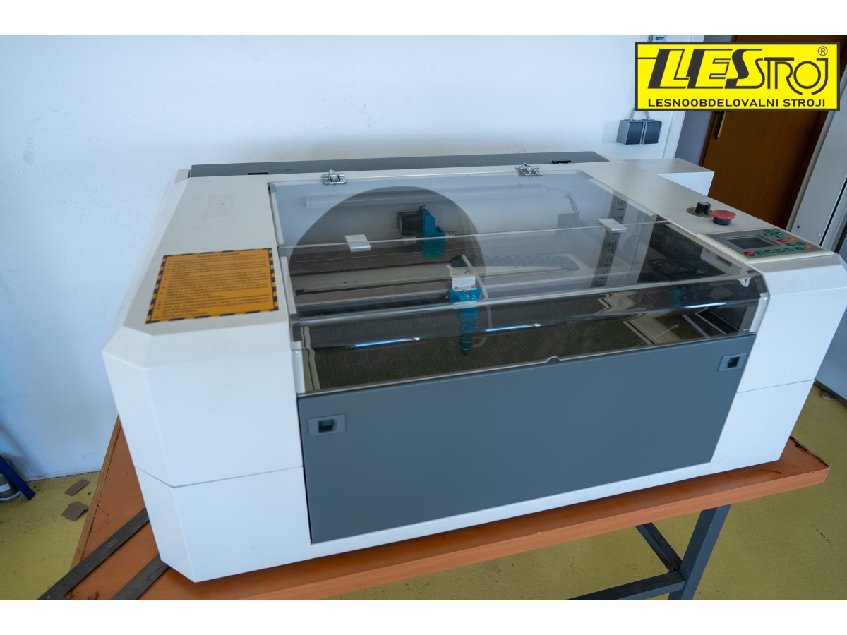 Laser HS-6040 stroj z močjo 60 W ponuja delovno površino 600 × 400 mm, visoko natančnostjo ±0,01 mm, hitrostjo graviranja do 1000 mm/s. Vključuje vodno hlajenje, programsko opremo v slovenščini ter dodatno opremo, kot so vodna črpalka, kompresor zraka in odsesovalna naprava.
