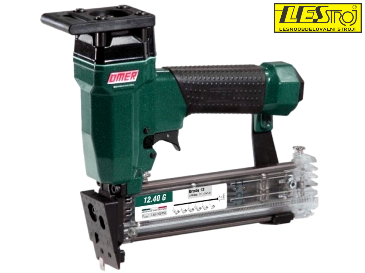 OMER 12.40 G je profesionalni pnevmatski zabijalni aparat za natančno pritrjevanje Brad 12 (18 gauge) žebljev. Zasnovan je predvsem za steklarska, mizarska in montažna dela, kjer sta pomembni natančnost in zanesljivost. Zaradi kakovostne italijanske izdelave je primeren za intenzivno profesionalno uporabo.