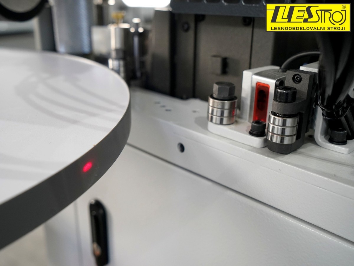 KDT-305MC je opremljen z 2 naprednima laserskima senzorjema, ki samodejno zaznata preostalo dolžino plošče za robno obdelavo.