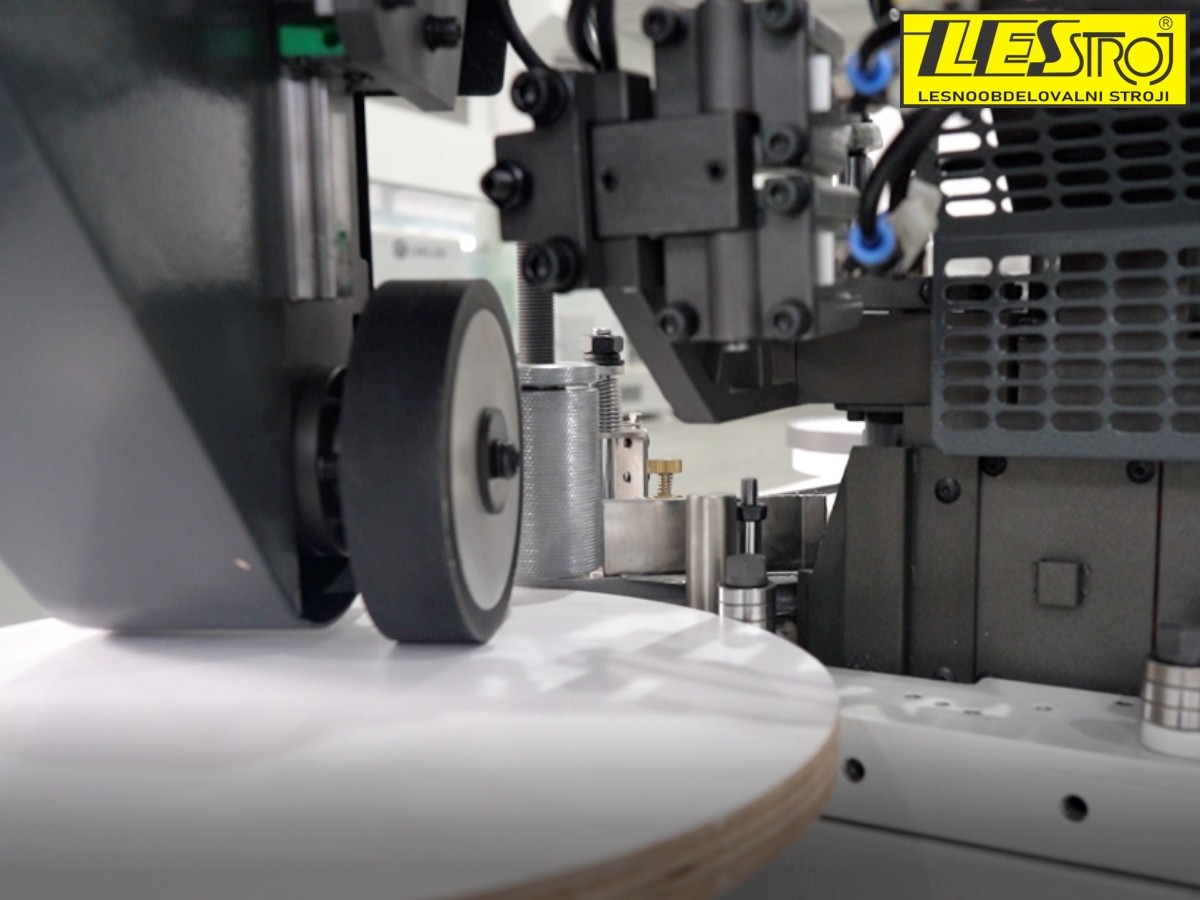 Kompaktna zasnova, prostorska varčnost in prilagodljiva vrtljiva roka omogočajo enostavno rokovanje z robnimi trakovi pri okroglih, ovalnih in zaobljenih pravokotnih ploščah.