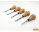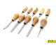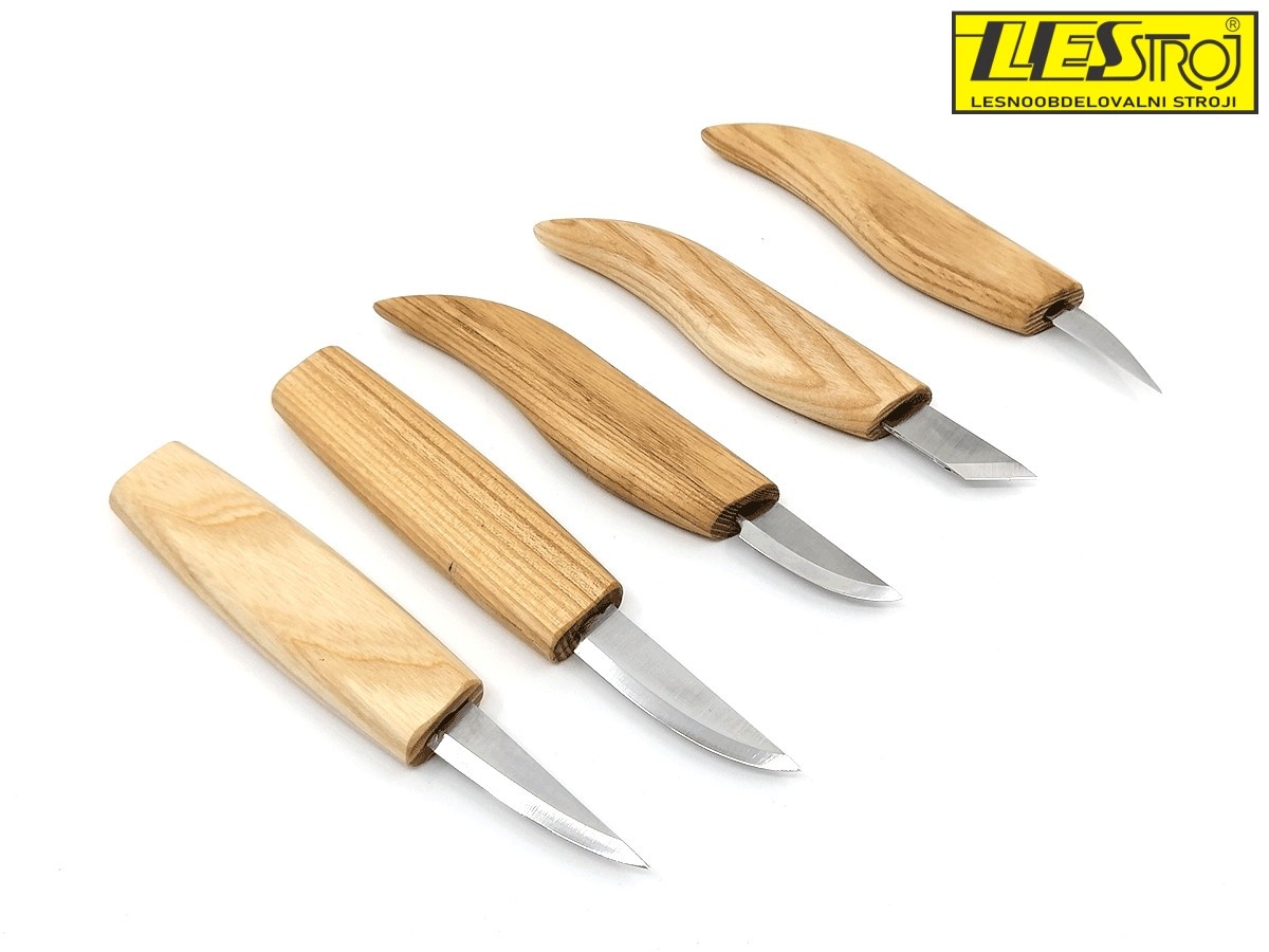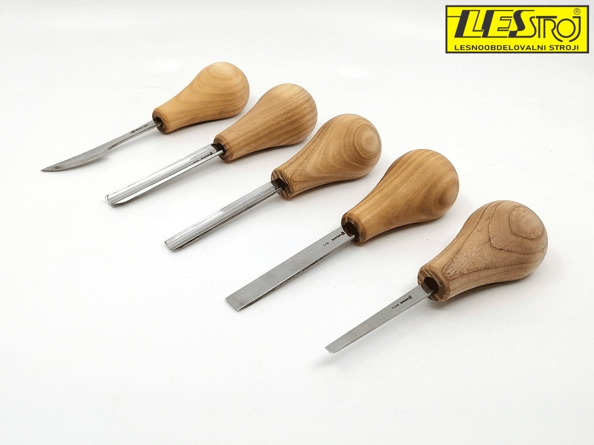 Vsako orodje je izdelano iz kakovostnega jekla in opremljeno z ergonomskim lesenim ročajem, ki zagotavlja udoben oprijem tudi pri daljši uporabi. Rezila so izjemno ostro nabrušena, kar omogoča čiste reze, natančno obdelavo detajlov in učinkovito rezbarjenje tako mehkega kot trdega lesa.