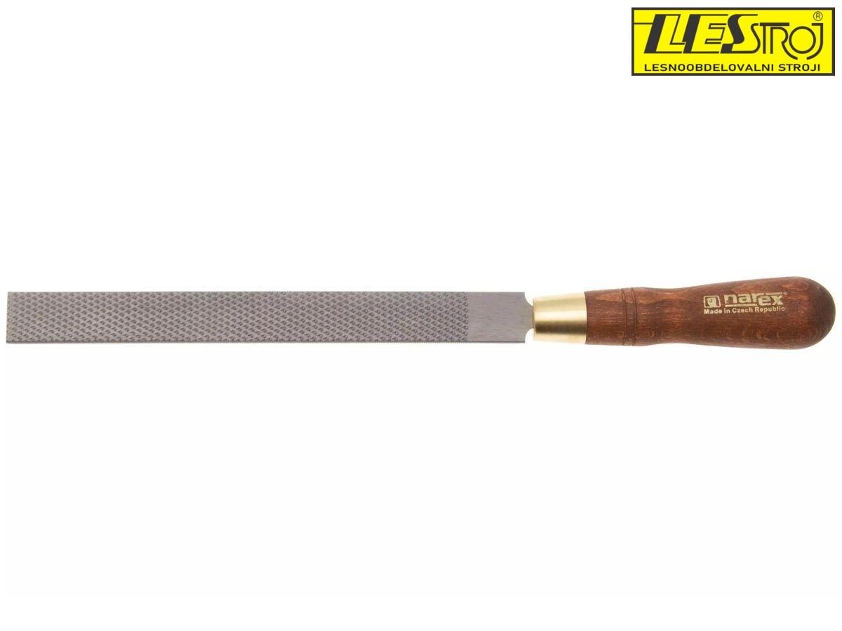 Rašplja ravna NAREX, 25×250 mm – rezilo iz ogljikovega jekla (49 HRC), ročaj iz bukve z medeninastimi obročki, idealna za izravnavanje in oblikovanje lesenih površin.