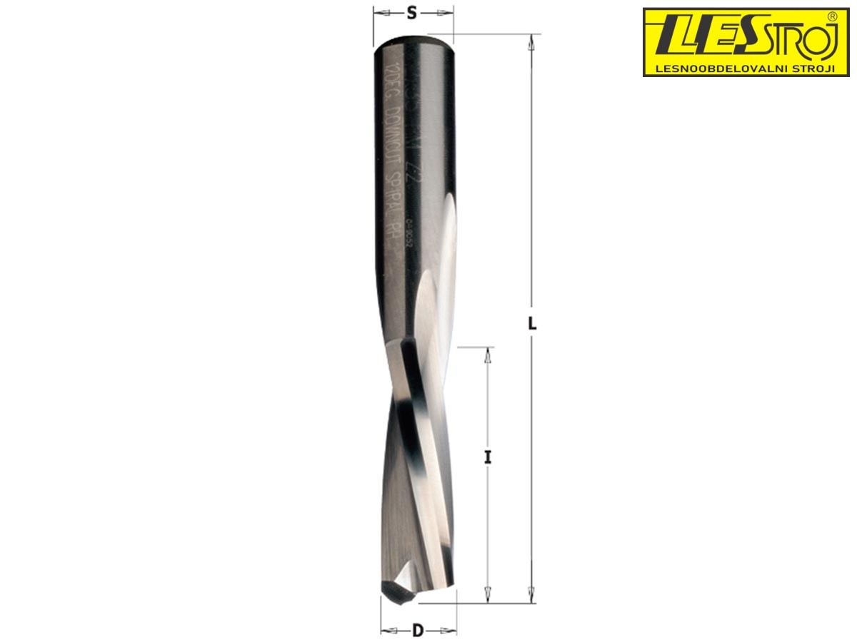 Spiralni rezkar Downcut daje vrhunske rezultate in je posebej primeren za rezkanje, pri katerem želimo odlično kakovost odreza zgornjega sloja. Zaradi svoje geometrije je primeren za rezkanje obdelovancev, ki jih težje pritrdimo.