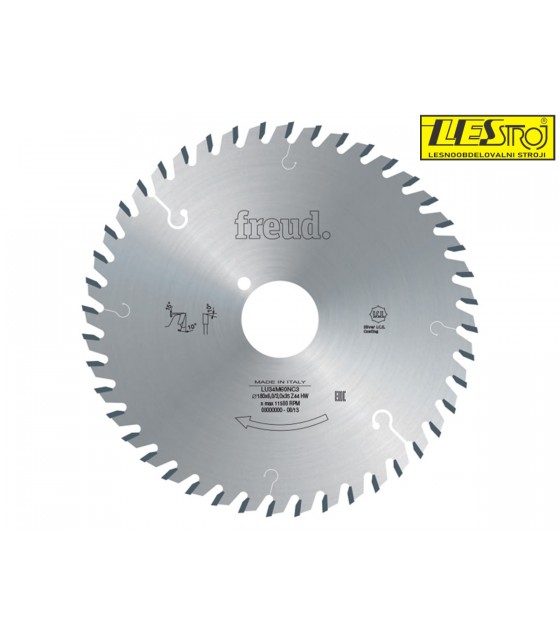 Žagni listi za prečno žaganje masivnega lesa se dobro obnesejo tudi pri žaganju kompozitnih materialov (MDF, OSB, iverne in furnirne plošče). Žagni listi so izdelani iz visokokakovostnega jekla in odlične karbidne trdnine, zobje so nagnjeni naprej (pozitivni prsni kot) in izmenično levo/desno brušeni, kar zagotavlja najboljše rezultate.